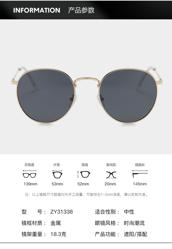 - Eyewear style: Round frame