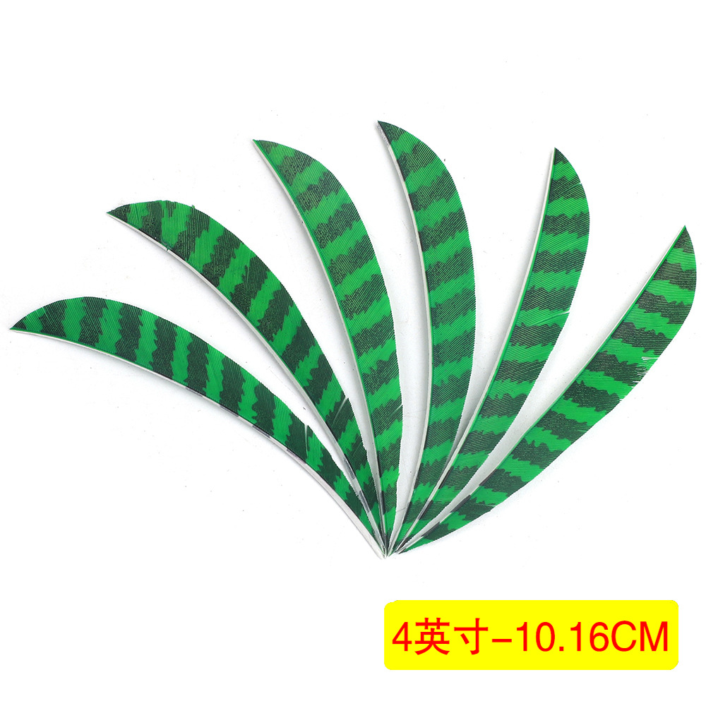 - Specifications: Green (4-inch shield-shaped real feathers)