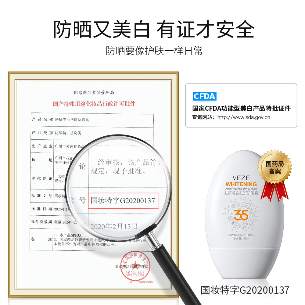 - Specification: Fanzhen Skin Research Whitening Sunscreen 45ml (Randomly sent with new or old packaging, old version 30ml)