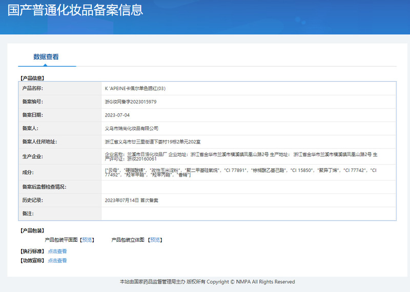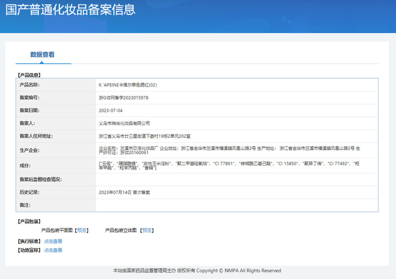 - Non-special cosmetics registration certificate number: Zhejiang G makeup network registration number 2022018158