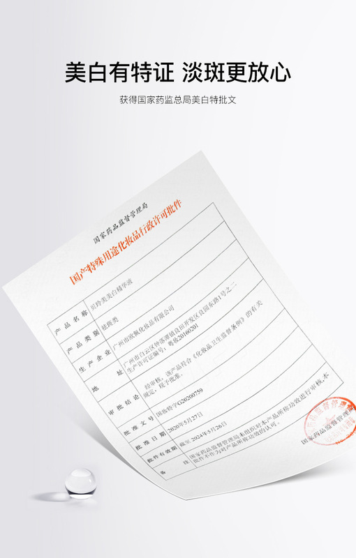 - Special Use Cosmetics Certificate Number: National Cosmetic Special Character G20200759