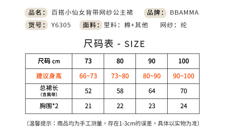 - 面料名稱:里料:棉+其他網紗:錦綸