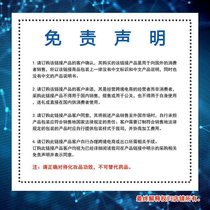 - 產品規格:30ml盒裝(僅供外貿出口銷售,禁止國內銷售,購買等同默認免責申明)