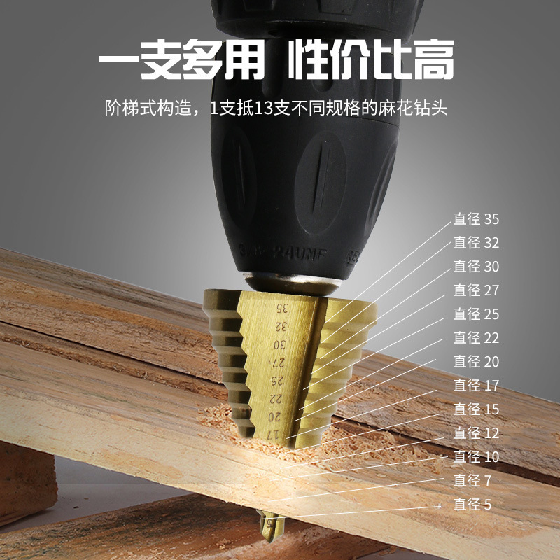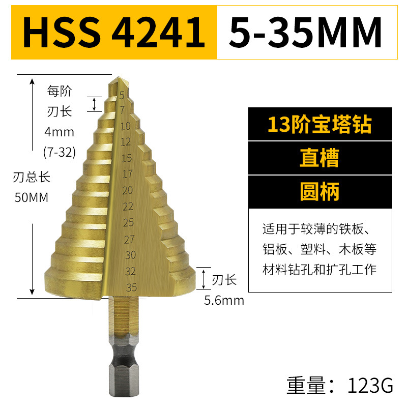 - Model: Hex Shank 5-35 Titanium Plated Step Drill