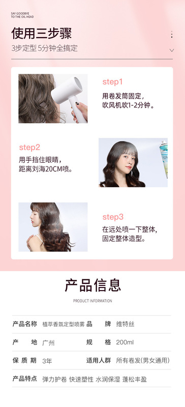 - 規格:維特絲幻彩香氛定型噴霧(輕盈定型)