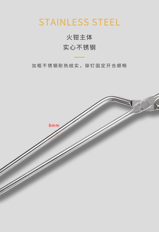 - Specifications: [MS-42] Stainless steel fire tongs