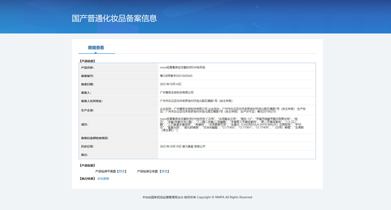 - 生產許可證號:粵妝20180113