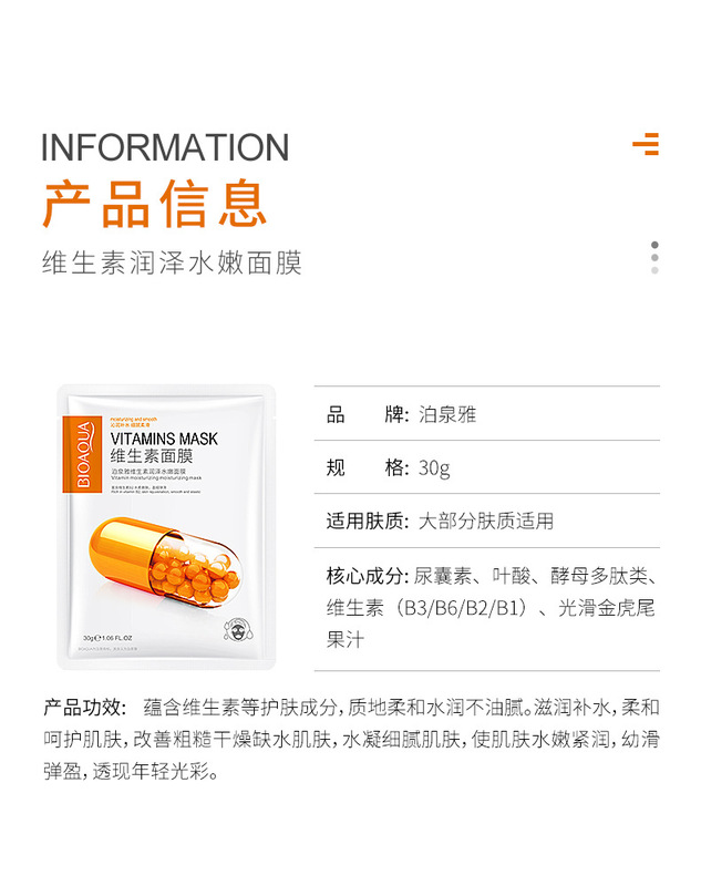 - 產品系列:泊泉雅維生素補水保濕隱形面膜片裝系列