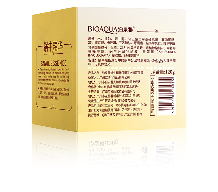 - 產品規格:泊泉雅蝸牛精華潤澤補水睡眠面膜(新)120g