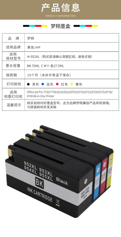 - 對應原裝型號:HP955XLHP959XL