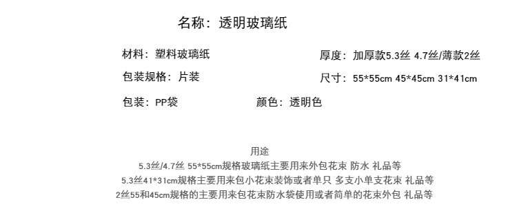 - 材質:玻璃紙