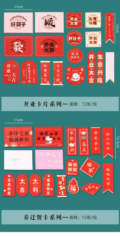 - 規格型號:喬遷賀卡系列72張/包*多規格