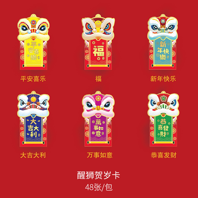 - 規格型號:賀歲醒獅卡48張/包送掛繩*多規格