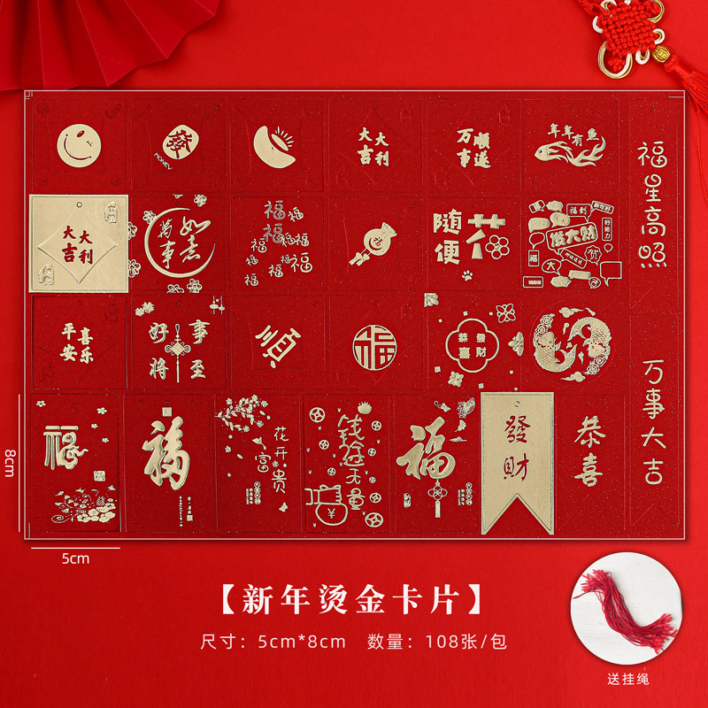 - 規格型號:【新年燙金卡片】108張/包送掛繩*多規格