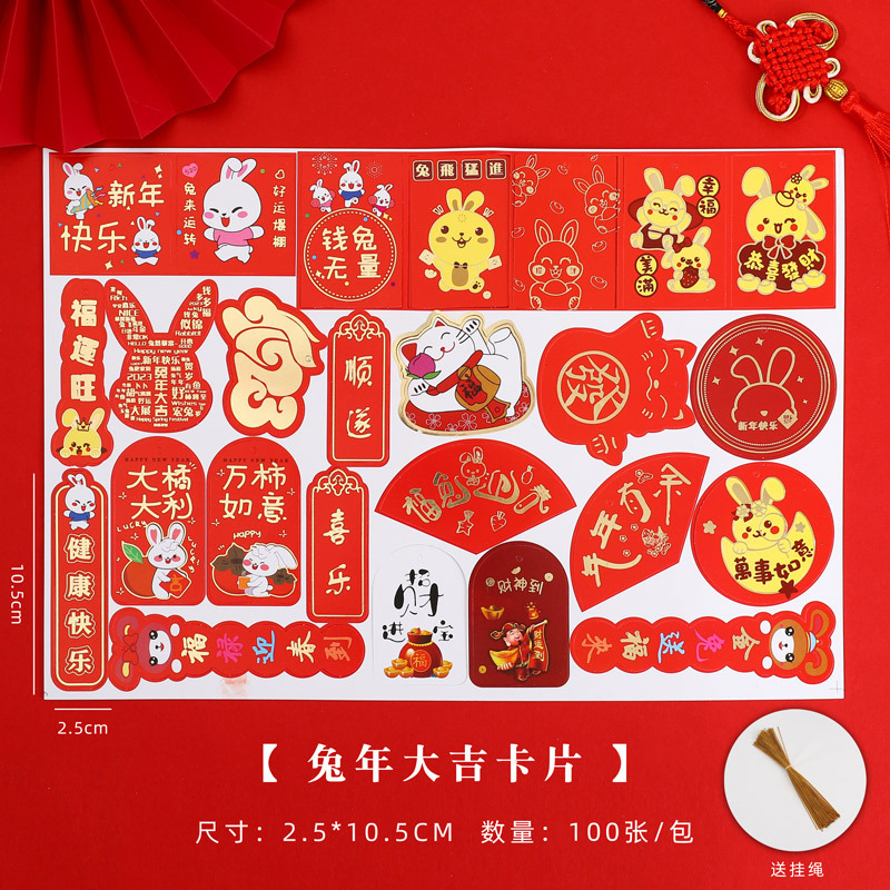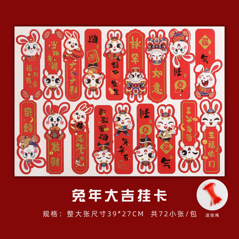 - 規格型號:雙面兔年大吉掛卡72張/包送掛線*多規格