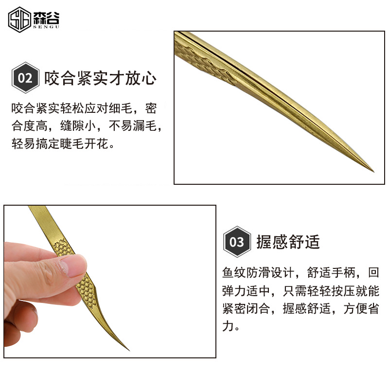 - Specifications: 18K gold matte fish pattern gold feather tweezers (independent packaging bag)