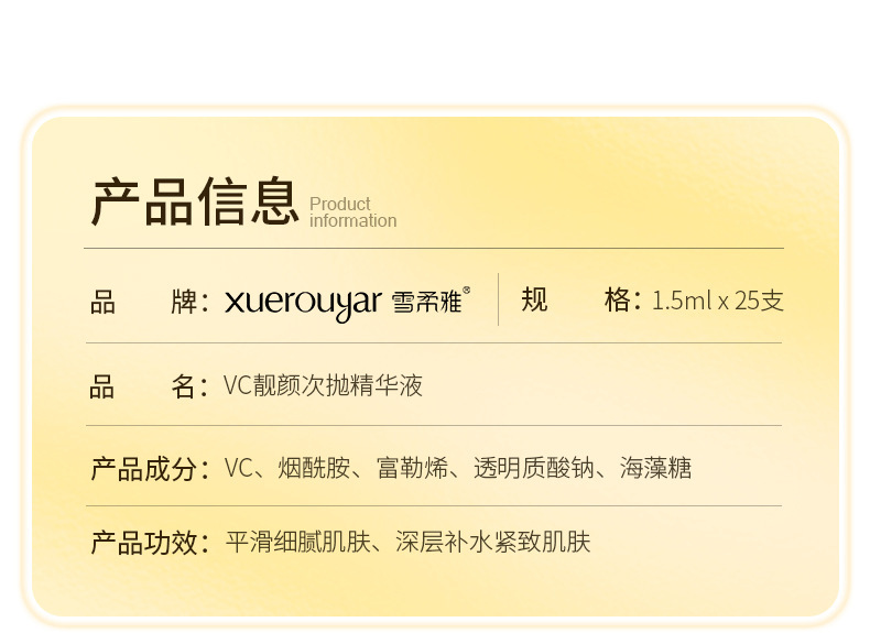 - 產品規格:VC靚顏次拋精華液1.5ml*25支