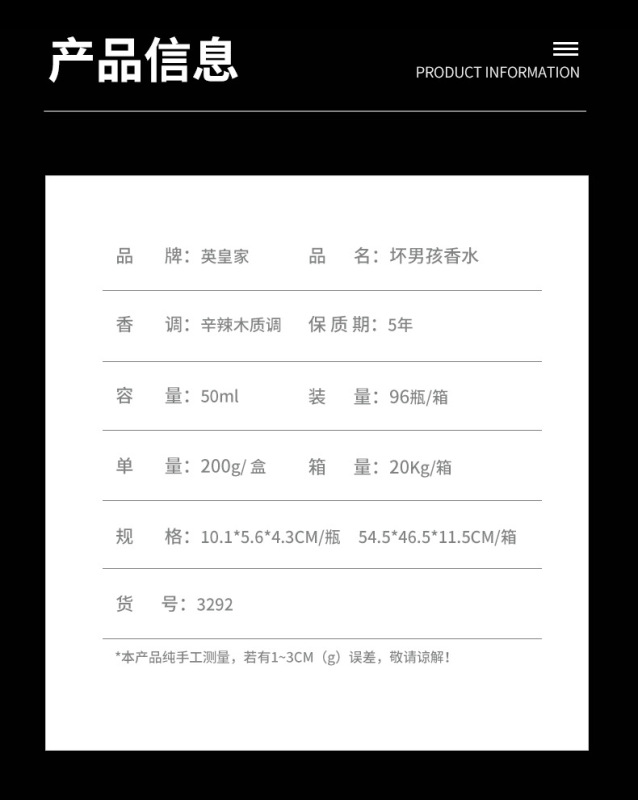 - Specifications: 3292 Bad Boy 50ML