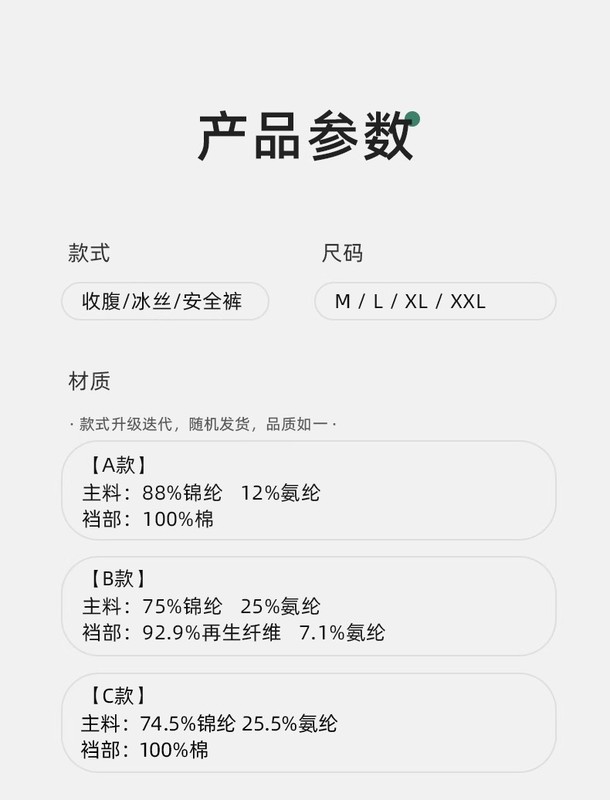- Content of crotch lining ingredients: 100