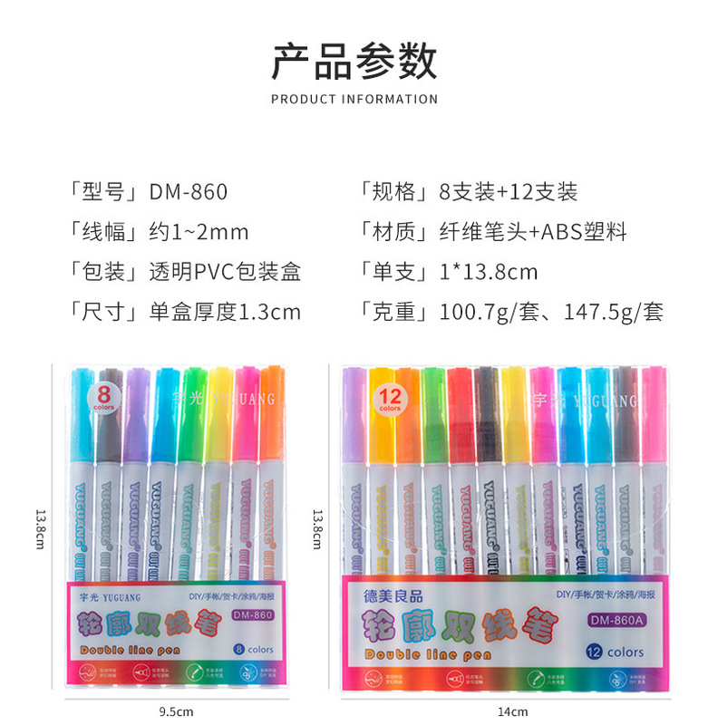- Specifications: Cross-border 8-color set, all in English