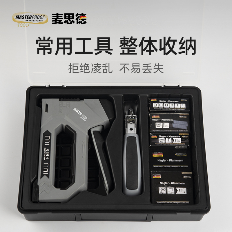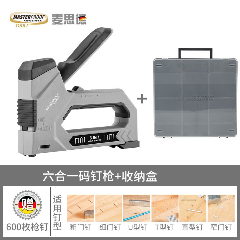 - Specification: 6-in-1 Staple Gun + Carry Storage Box