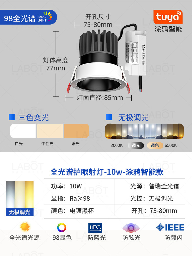 - Power: Dyy Smart Spotlight【Black Cup 10W-Dimmable & Color-Tunable-RA98 CRI】