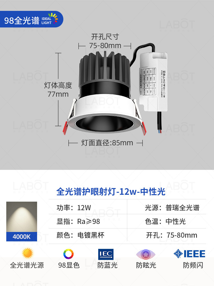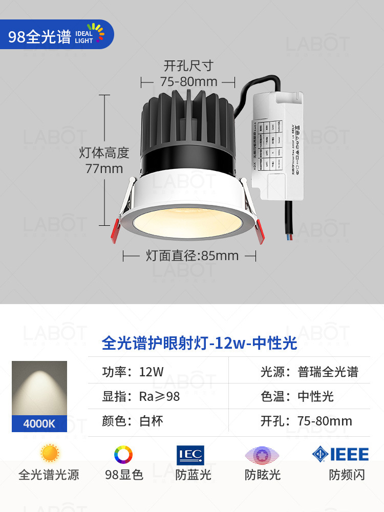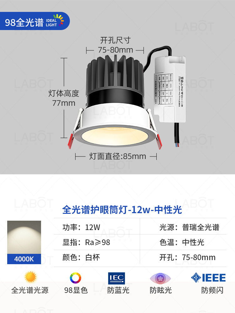- Power: Full Spectrum Spotlight【White Cup 12W-4000K-RA98 CRI】