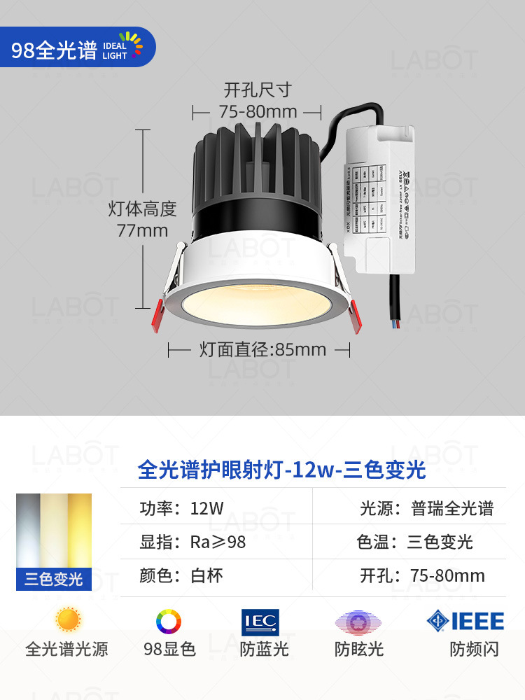- Power: Full Spectrum Spotlight【White Cup 12W-Three-Color Variable Light-RA98 CRI】