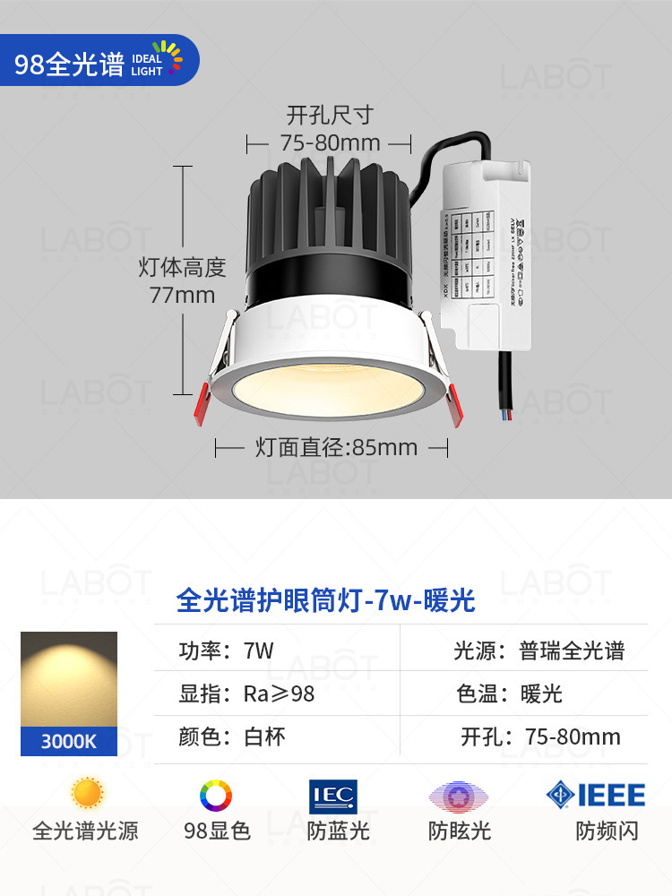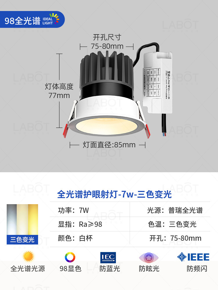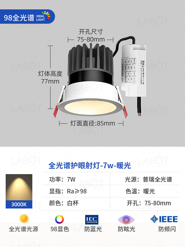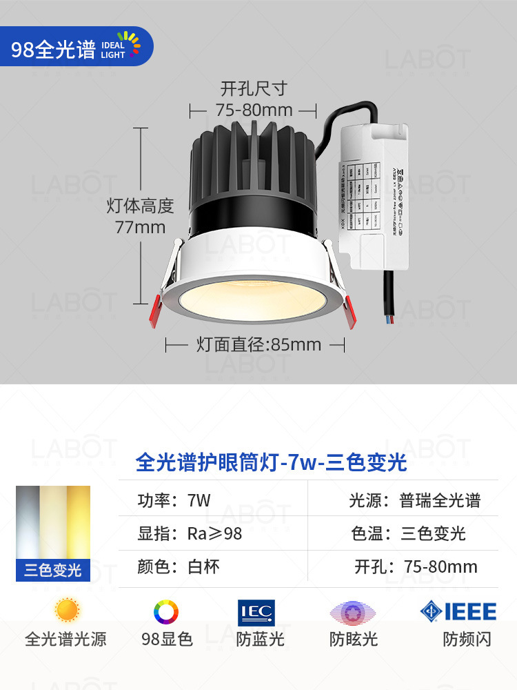 - Power: Full Spectrum Spotlight【White Cup 7W-Three-Color Variable Light-RA98 CRI】