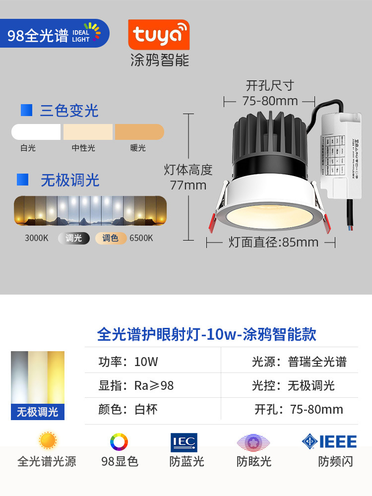 - Power: Dyy Smart Spotlight【White Cup 10W-Dimmable & Color-Tunable-RA98 CRI】