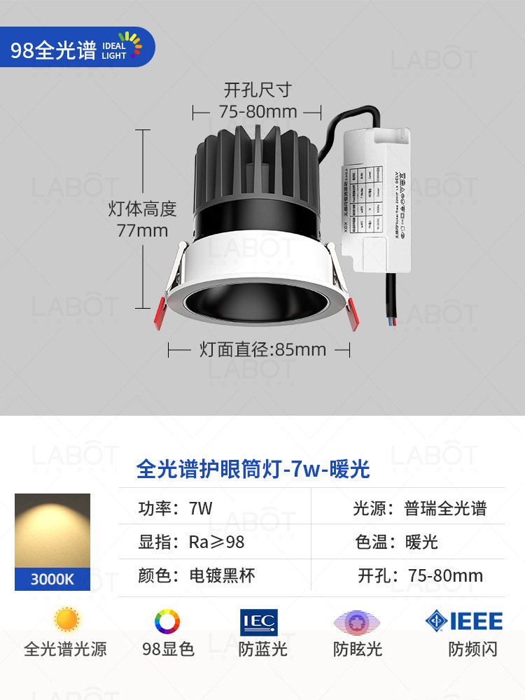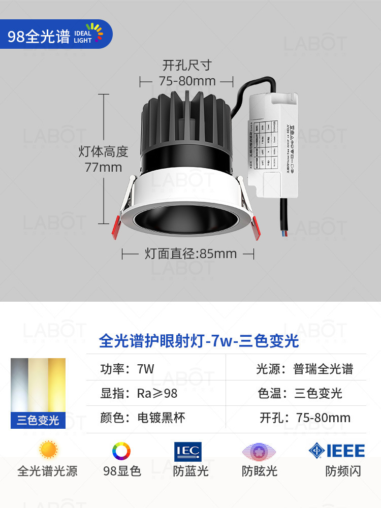 - Power: Full Spectrum Spotlight【Black Cup 7W-Three-Color Variable Light-RA98 CRI】