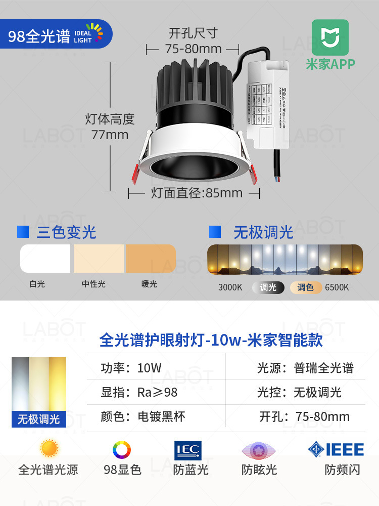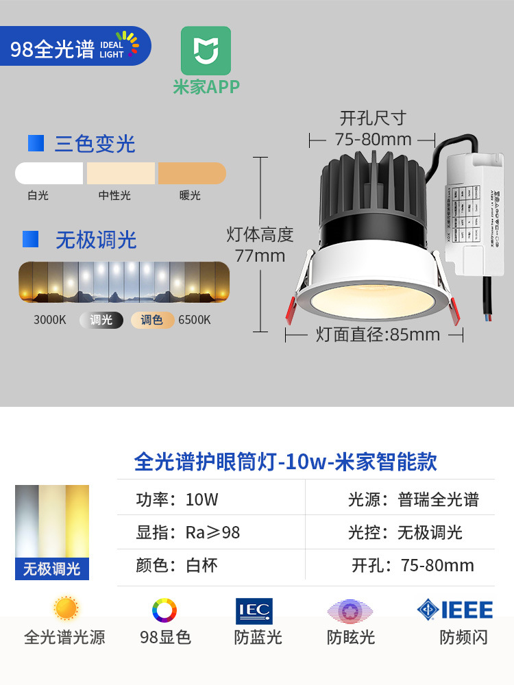 - Power: Mijia Smart Spotlight【White Cup 10W-Dimmable & Color-Tunable-RA98 CRI】