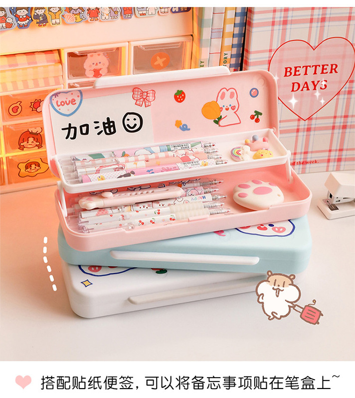 - Specifications: [Pink + Sky Blue] Double-layer pen box + 2 stickers and 8 stickers