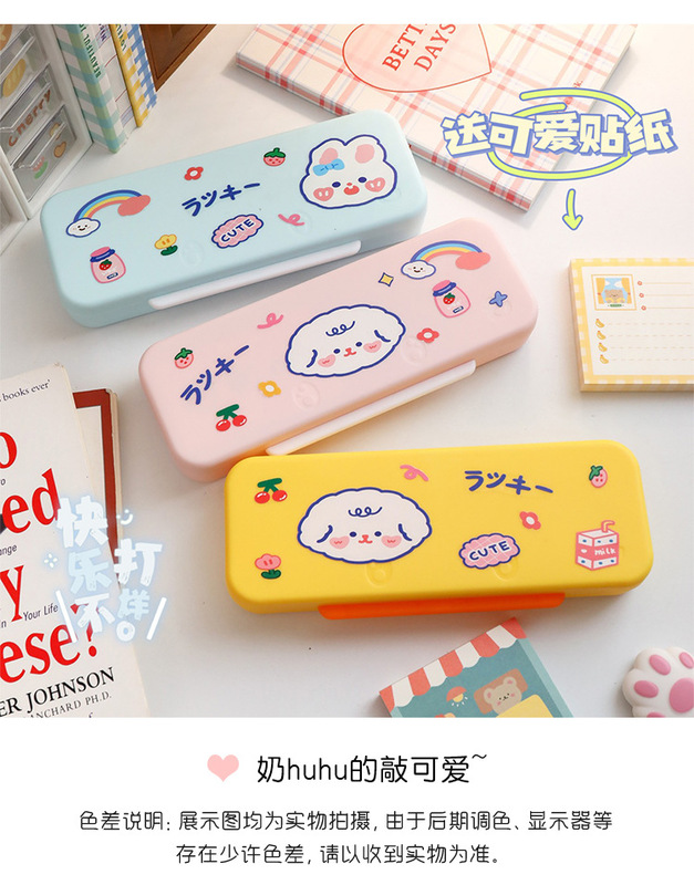 - Specifications: [cream yellow + sky blue] double-layer pen box + 2 stickers and 8 stickers