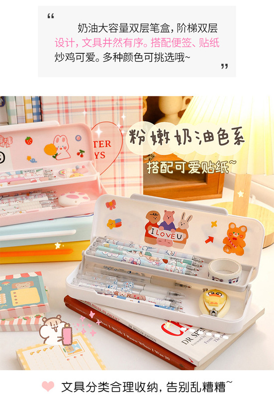 - Specifications: [Cream Yellow + Cream White] Double-layer pen box + 2 stickers and 8 stickers