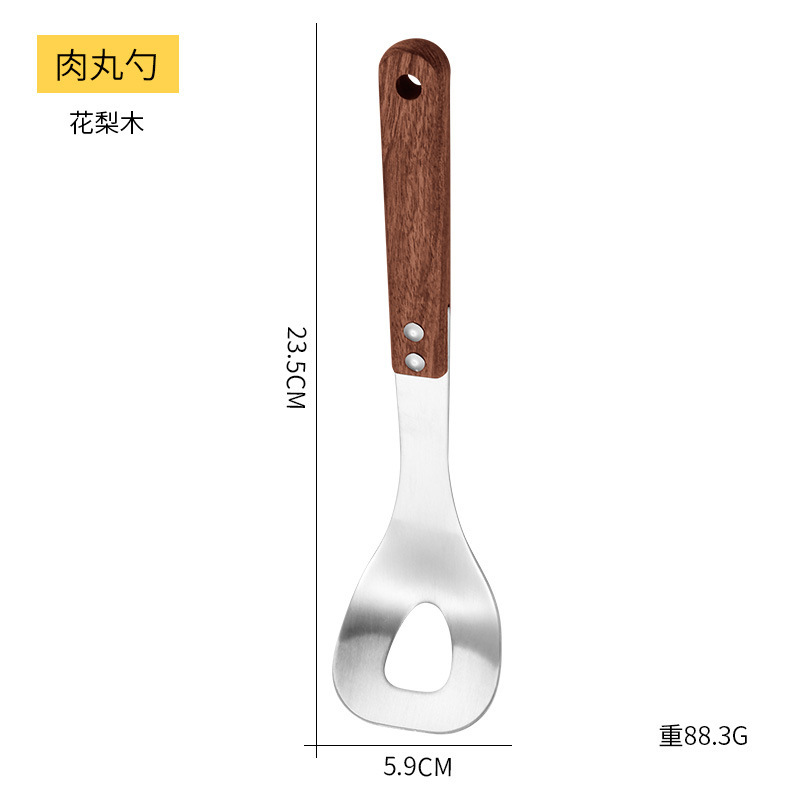 - Specifications: 304 pear flower wood meatball spoon