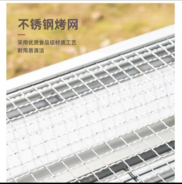 - Grill/plate specifications: Large square iron mesh barbecue grill + 8-piece set