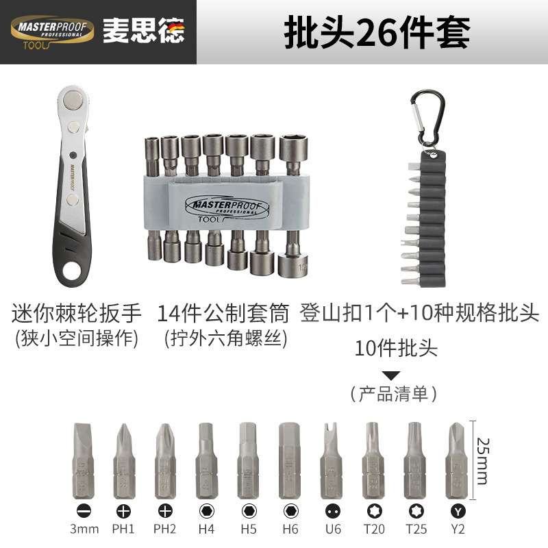 - Specifications and models: mini wrench + storage box + 7 sockets + extension rod