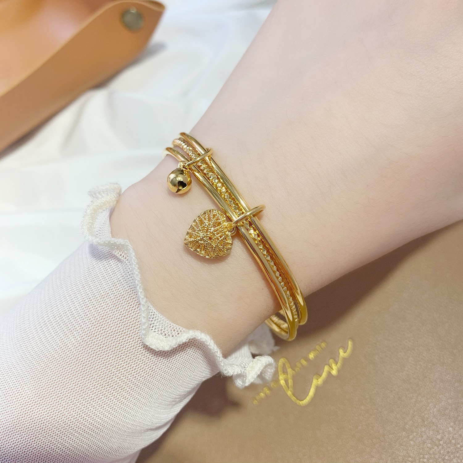 - 系列:三生三世沙金編織愛心手鐲