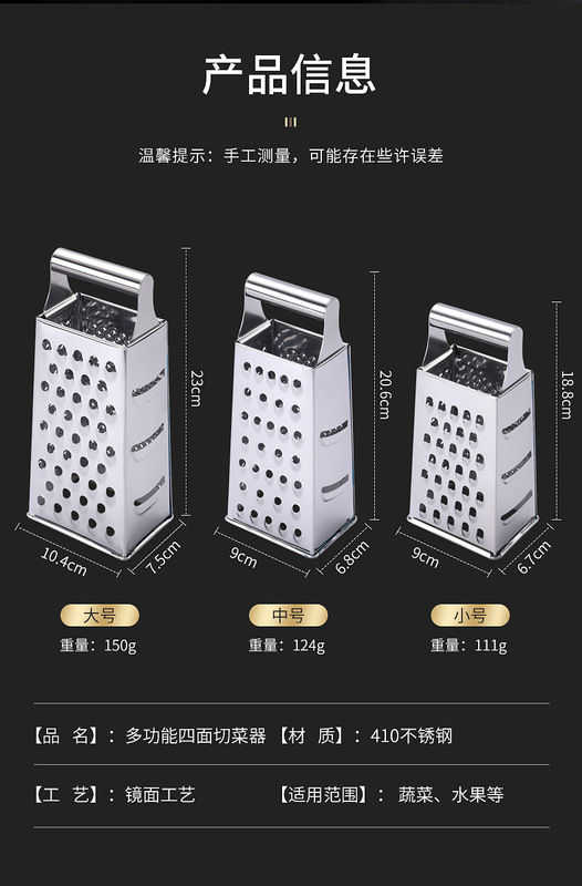 - Specifications: Four-sided stainless steel grater