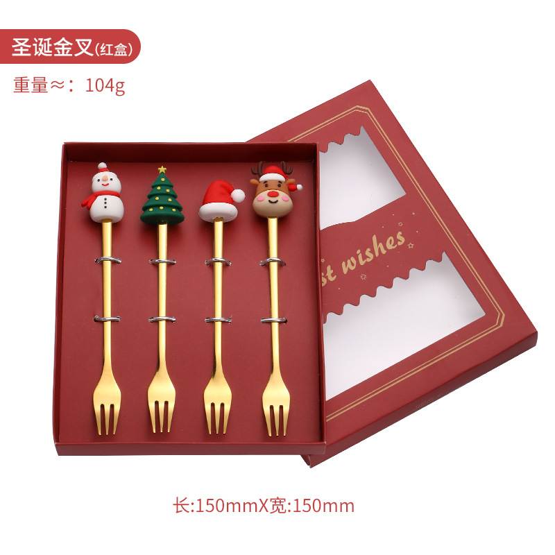 - Specification: Gold fork for Christmas red box four