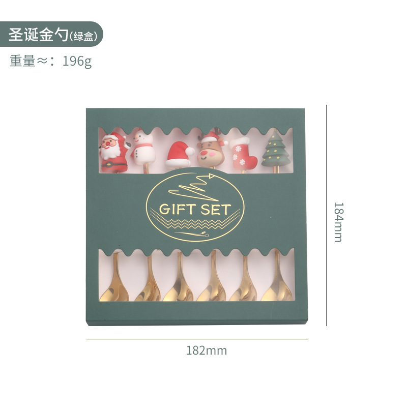 - Specification: Gold spoon for Christmas green box six