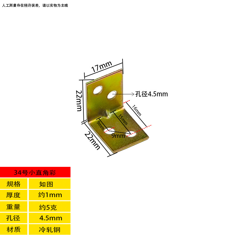 - Specification: 34号直角22X17