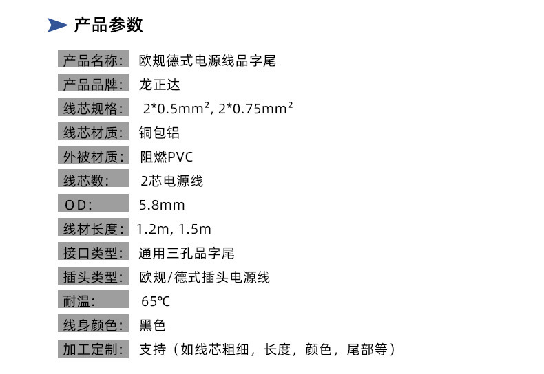 - Specifications and models: 1.5 meters European standard German power cord thick core thin wire 2*0.75 square meters