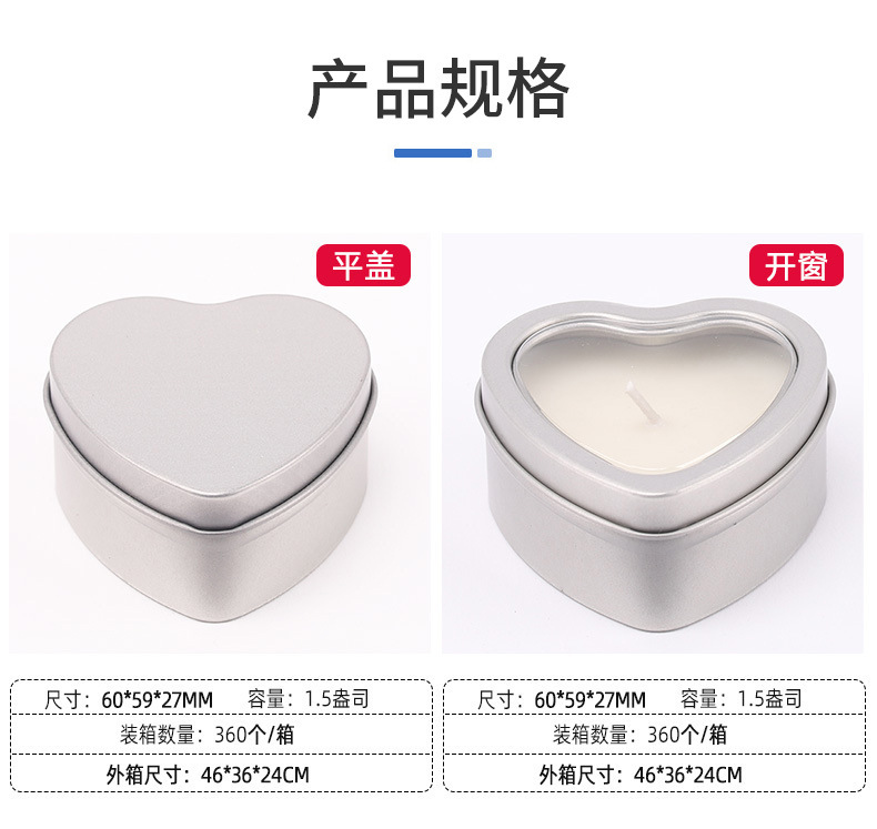 - Model: 60*59*27MM Heart-shaped Candle Can