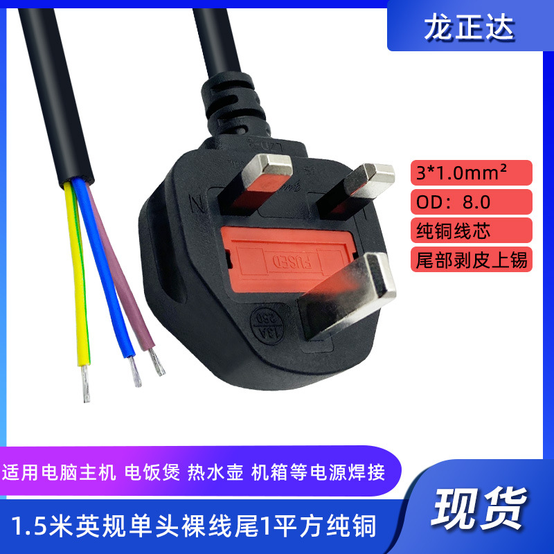 - Specification Model: 1.5m UK Standard Single-Head Power Cord Bare Tail 1 Square Pure Copper