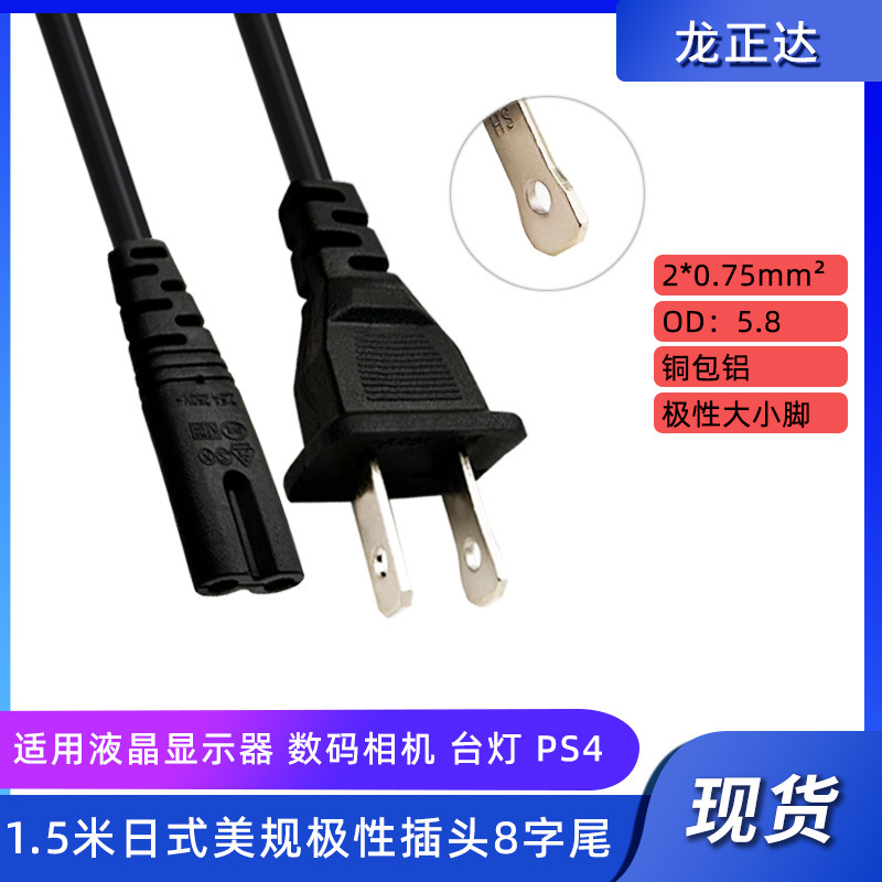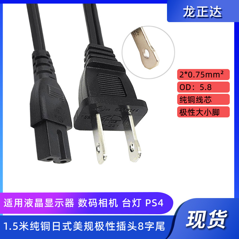 - Specification Model: 1.5m Polarized Small/Large Feet Japanese Standard 8-Character Tail Power Cord 075 Copper