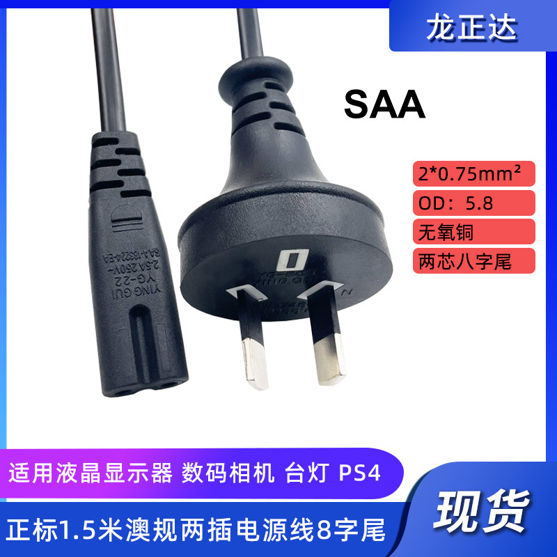 - Specification Model: 1.2-meter Australian-standard two-prong power cord with 8-shaped tail