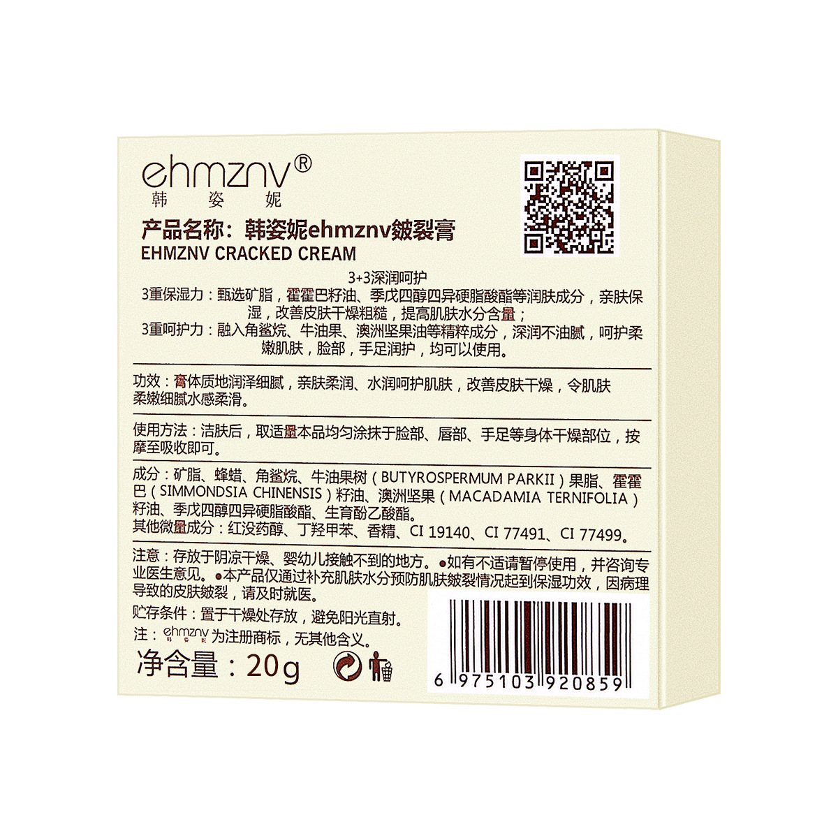 - Product Specification: 20g Cracked Skin Cream