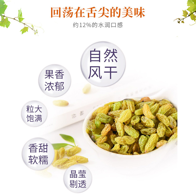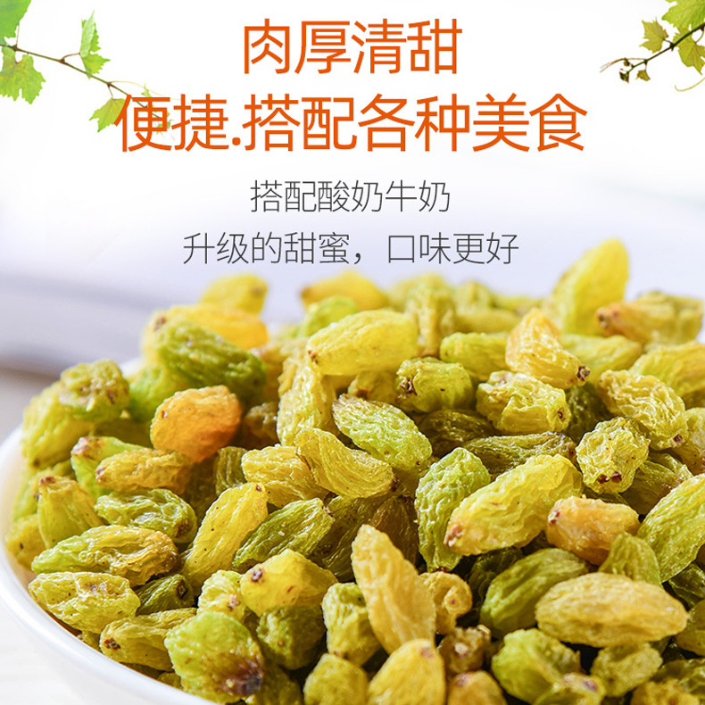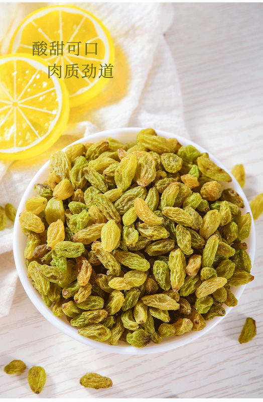 - Packaging specifications: green-colored raisins 500g